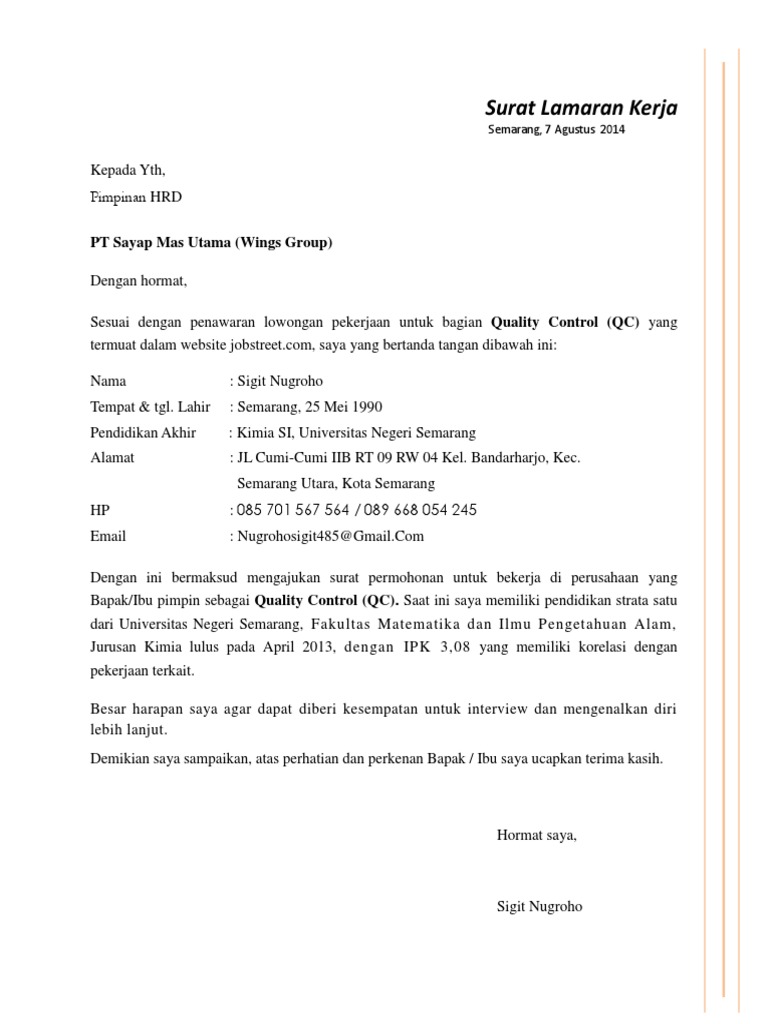 15 Contoh Surat Lamaran Kerja Indomaret Untuk Berbagai Posisi Suratresmi Id from www.suratresmi.id Daftar isi tampilkan pengertian dan fungsi surat lamaran kerja smk. Contoh surat lamaran kerja perawat di rumah sakit yang baik dan. Dengan hormat,sehubungan dengan adanya iklan lowongan pekerjaan dari pt parkland world indonesia, seperti yang termuat di info lowongan kerja jepara. Yaitu surat yang dibuat oleh orang yang membutuhkan pekerjaan kepada pihak terkait agar diberi pekerjaan sesuai dengan yang tertera dalam surat lamaran pekerjaan. Jangan khawatir, kali ini 1. Apabila berniat untuk melamar pekerjaan, berikut inilah contoh surat lamaran kerja di pabrik makanan yang bisa dijadikan acuan, antara lain: Contoh surat lamaran kerja akuntansi dalam bahasa inggris dan artinya. 37 contoh surat lamaran kerja terbaru yang baik dan benar lengkap.
